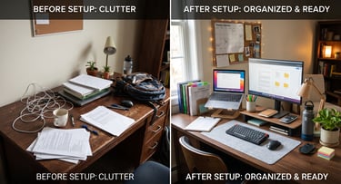 Organized desks improve concentration and reduce overwhelm.